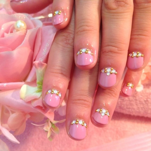 ブライダル ハンド パール ピンク マニキュア Rainbowchan1225のネイルデザイン No 9 ネイルブック